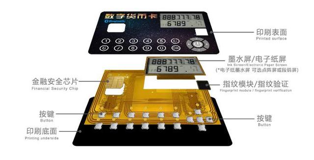 得益于有源智能卡冷压快速封装工艺发开的数字货币可视卡,可视卡内置高性能安全芯片及低功耗的电子纸屏幕,蓝牙模块 和触摸按键模块,可定制选择配置 OTP 模块。支持SDK 二次开发。开发者可通过开发应用来控制显示内容以及需要实现的功能,包括支付,定位,考勤,寻 物等,并且可以通过蓝牙来建立与手机端的通讯。