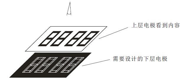将电子纸显示屏划分为各个独立的区域进行控制后,通过外接电信号就能够控制显示屏的显示。如在电子纸显示屏的结构中,上层电极为透明的导电 ITO 薄膜,中间为显示材料,显示图像是通过下层电极来定义的。所以这里涉及的是设计是指下层电极的设计,如下图所示: