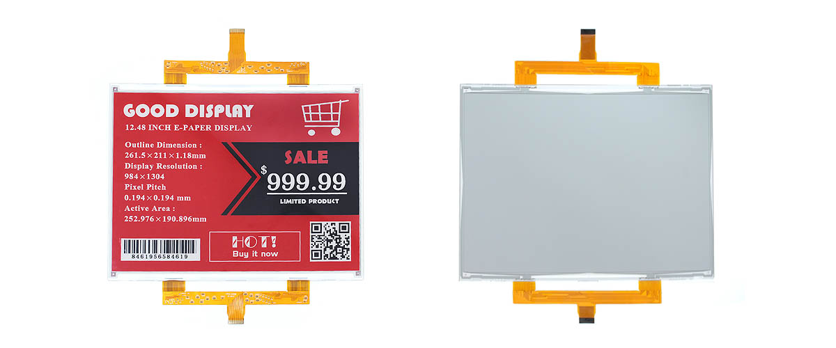 彩色12.48寸黑白红三色电子纸显示屏WiFi大尺寸墨水屏标牌GDP1248RW1