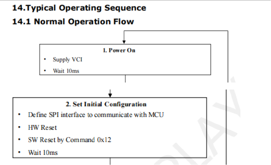 2.2. 根据流程图,完成SPI通信配置后,您需要执行墨水屏的硬件初始化以及软件初始化: