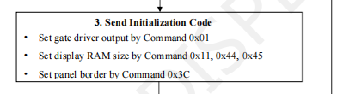 2.2. 根据流程图,完成SPI通信配置后,您需要执行墨水屏的硬件初始化以及软件初始化: