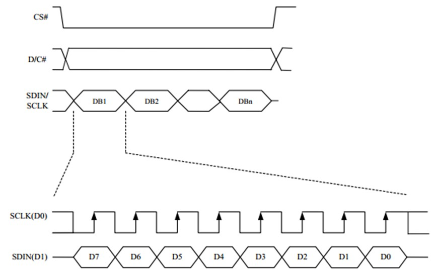 CS和DC就是要用到写数据和写命令里(时序图中CS低电平的时候开始写数据或者命令;DC=0的时候写命令,DC=1的时候写数据。结束后CS重新回到高电平。)