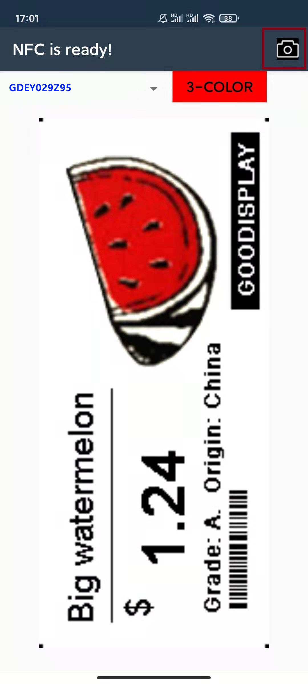 2.9寸 黑白色NFC无源电子货架标签/无电池/无线传输电子标签 GDN029BW